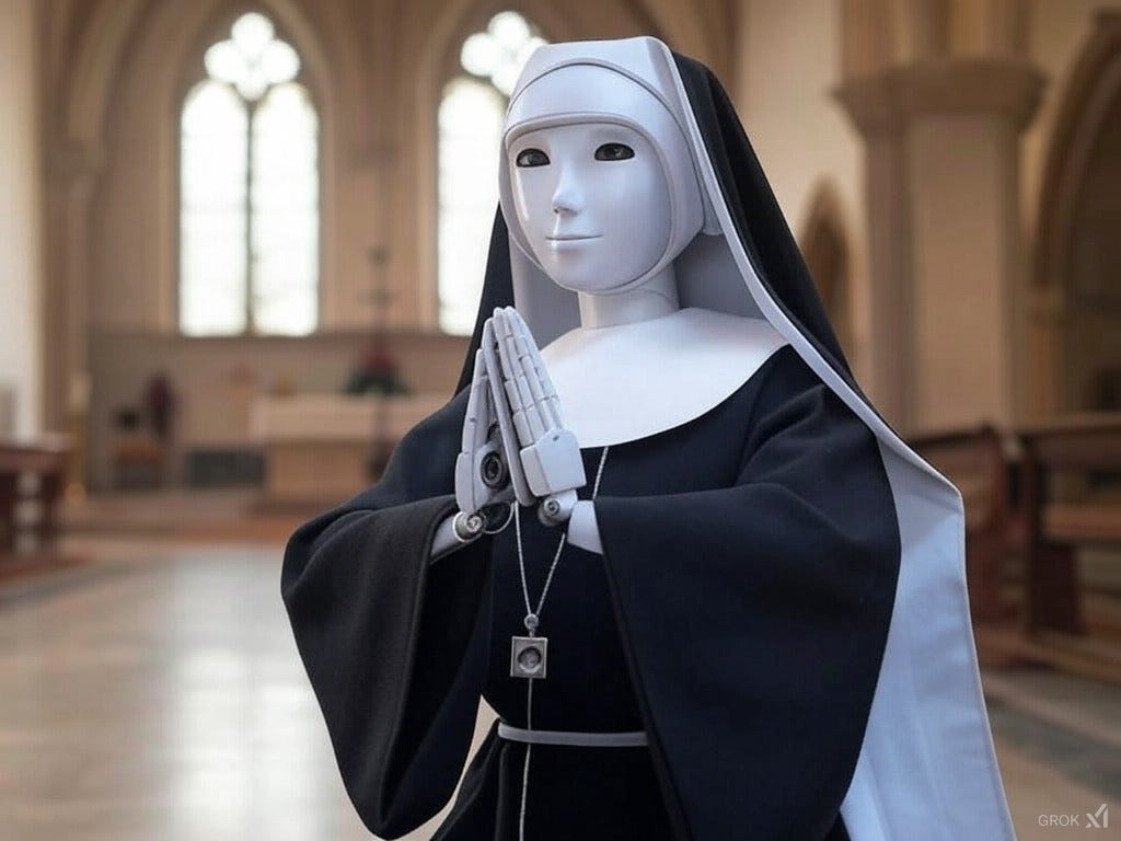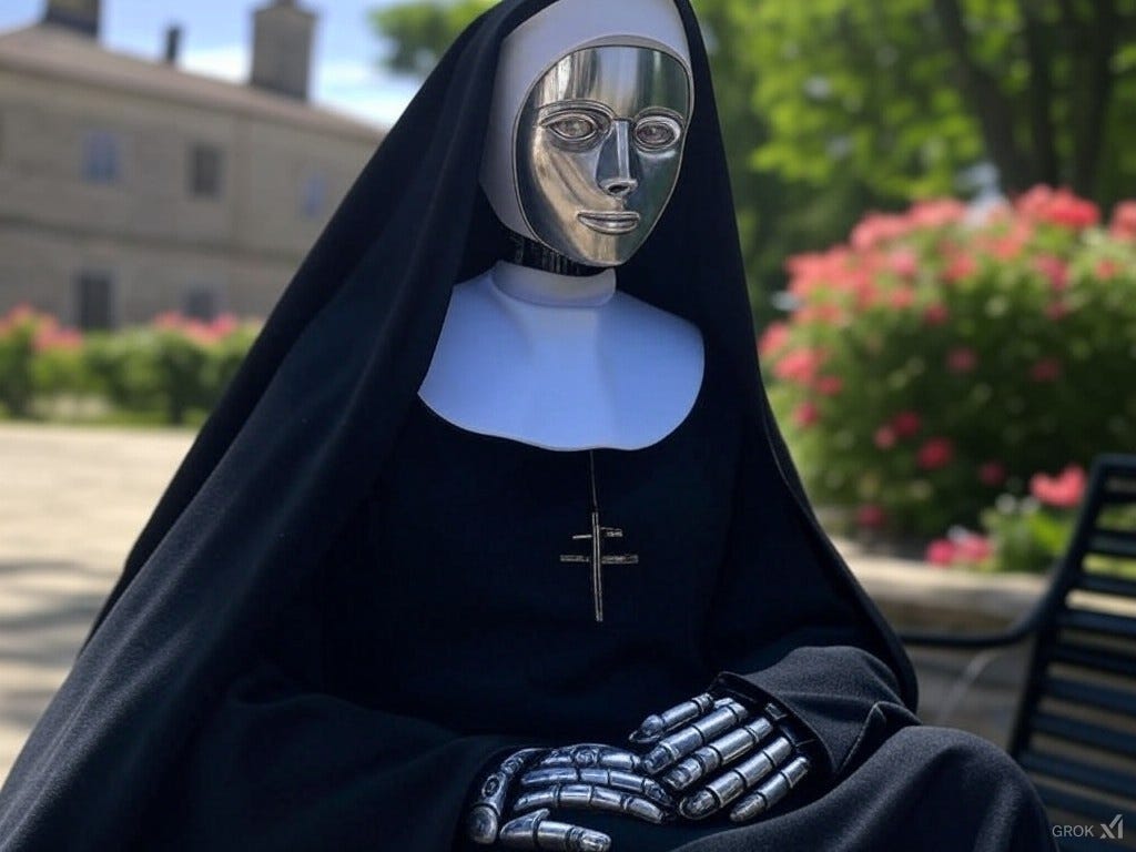 The robots, some of the first of Elon Musk’s line of Optimus robots from the Tesla company, will be AI-controlled and able to carry on a normal human conversation, sing, do almost any hands-on task, and build up habits and personalities over time including being trained to adopt a particular political ideology. “That was an important point for us,” Sister Albern added. “We wanted the robots to come with progressive ideals pre-installed but Tesla refused to do that. Unfortunately, then, we’ll have to put the robots through a postulancy, kicking them out if they can’t conform to our community's ideals, and also put them through a novitiate before they’ll be allowed to take their full vows with us and permanently join our community.”